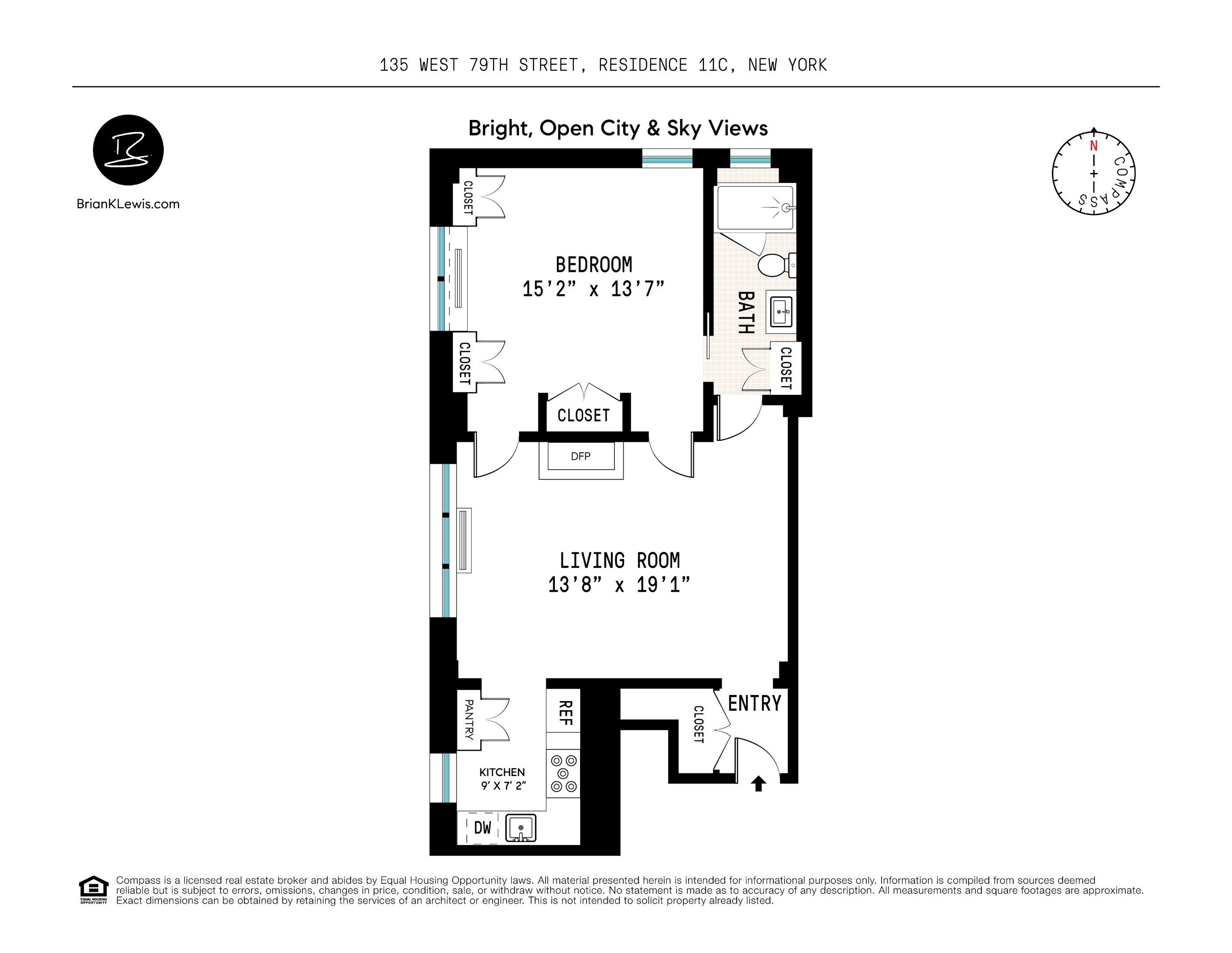 The bedroom is a tranquil, corner retreat boasting three custom closets and three big windows with sunshiny, open city views. With en suite access to the stunning marble bath, this peaceful, bright, and beautiful bedroom is a sweet suite indeed.