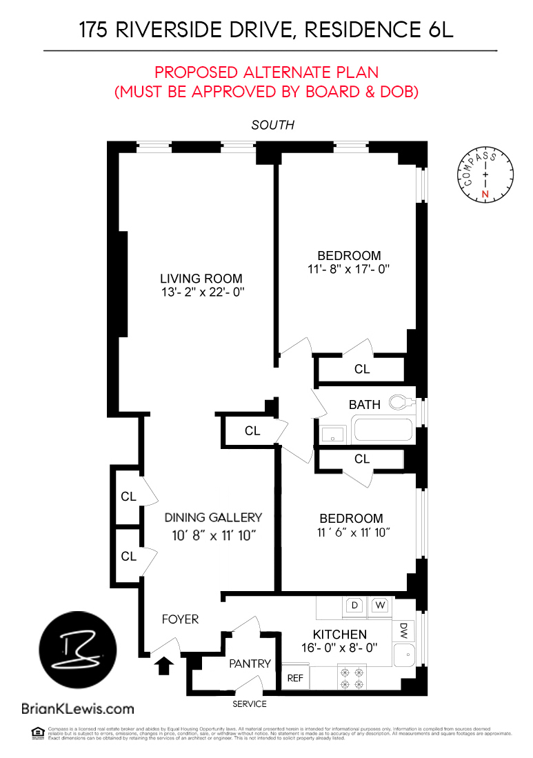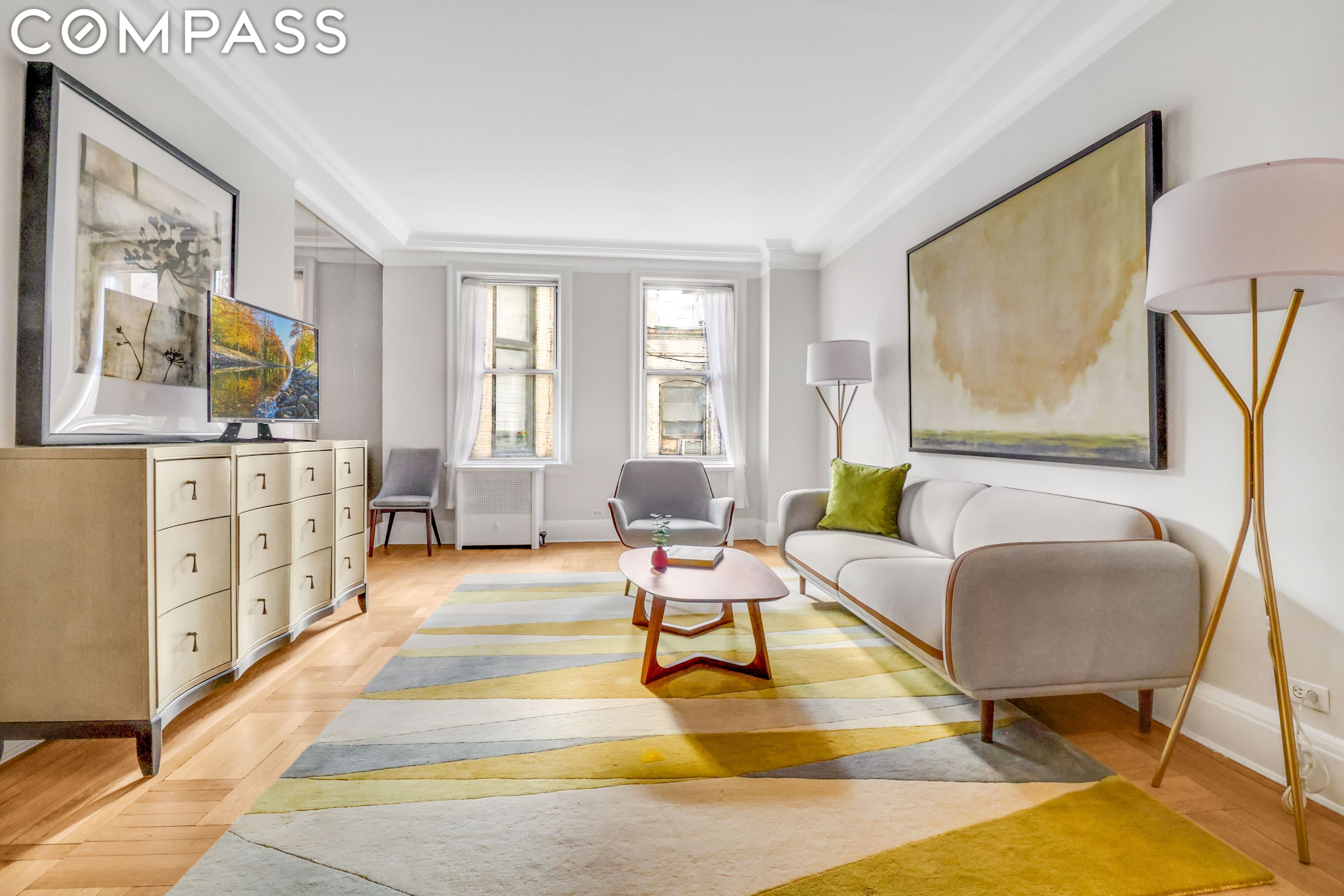 SUN-FILLED CORNER OPPORTUNITY AT COVETED ADDRESS COMFY REVISION-READY CLASSIC BY RIVERSIDE PARK BIG & BRIGHT RAW BEAUTY READY FOR YOUR UPGRADES In 1926, the renowned master architect James E.R. Carpenter created what is now one of New York's most treasured buildings: 173-175 Riverside - a formidable, handsome beauty with grand proportions and a supreme perch upon what the New York Landmarks Commission refers to as the most influential and architecturally important areas of the Upper West Side. This rambling residence is testament to Carpenter's timeless vision - an important, inspiring find that is ready for its next exciting chapter. A wide, twenty-feet deep entry gallery welcomes you into this rare residence. It brings you to the large living room, graced by two South facing windows. The primary bedroom suite is a corner abode with two exposures (cross breezes, anyone?) and ample closet space, served by a classic, windowed bath with original cast iron soaking tub. Formerly a big dining room, this space can be reimagined and reworked to create a comfortable second bedroom suite and a large dining foyer. The windowed, eat-in kitchen is large, versatile, and includes a washer/dryer. The closets are plentiful and immense. Underfoot are beautiful original hardwood floors, and soaring above are high ceilings with original plasterwork. Everywhere you look there is soul and beauty - and potential. Throughout this home, there is a good feeling - a feeling anchored in the classic comfort that comes with time. Sweetly positioned in its stunning, historic building, this home enjoys the benefits of its full-service address. With a top tier staff that includes round-the-clock doormen, a resident superintendent, laundry/bike/storage rooms, a premium fitness center, and a playroom, life here is easy and convenient. Nearby is most every area cultural, educational, dining, and shopping destination, supreme access to Riverside Park, easy access to playgrounds, transportation, and more. Life here is easy, good, and fun. In 1926, James E.R. Carpenter envisioned grand beauty and grace perched dramatically by Riverside Park. Today, that classic beauty and grace are right here waiting for you - ready for your vision. (Washer/Dryers, Guarantors, Gifting and 50% financing are permitted - 2% flip tax paid by buyer)