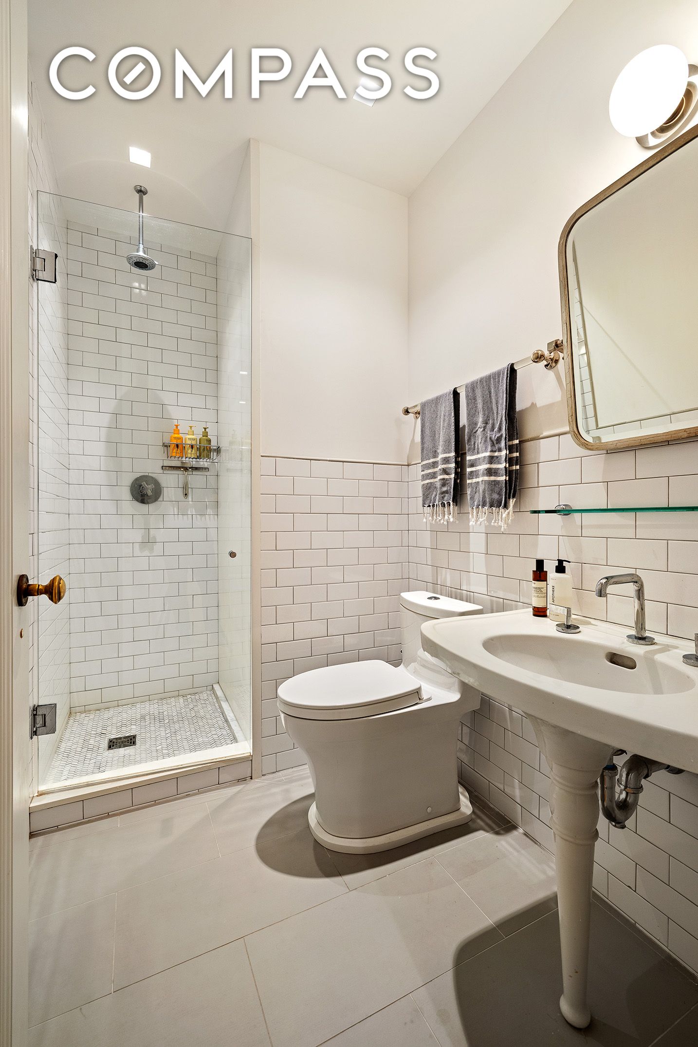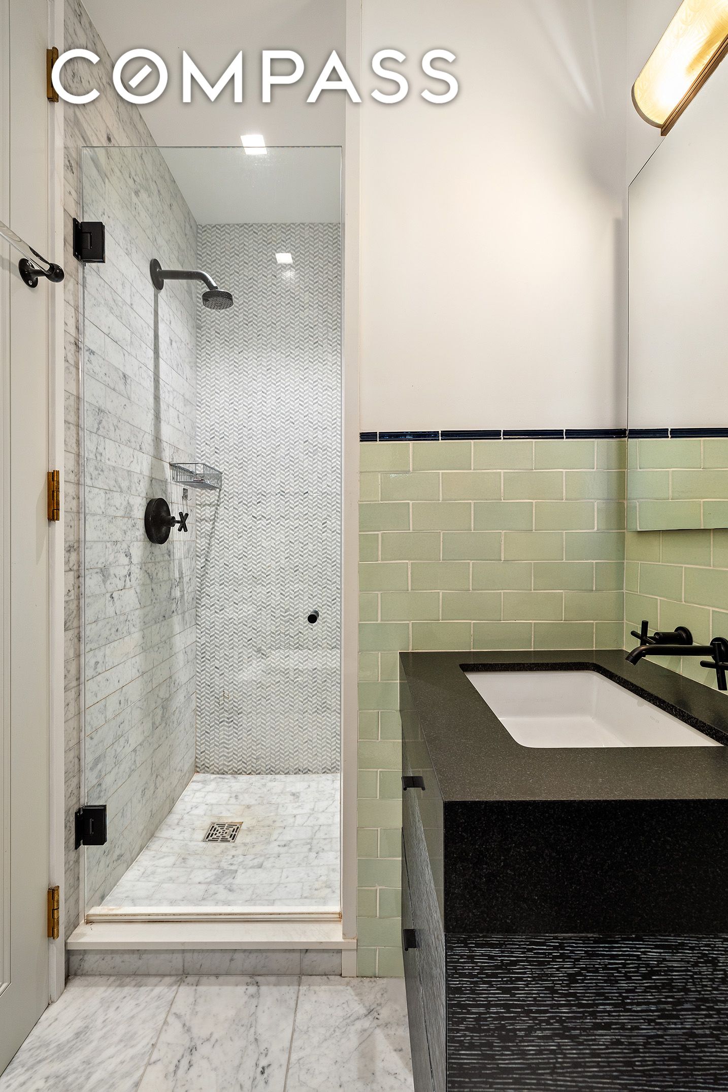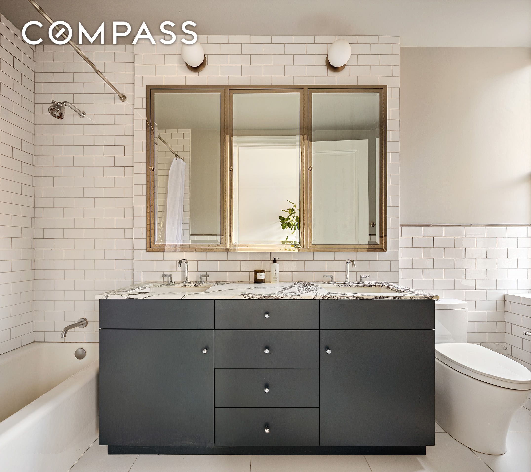 The gallery hall gracefully separates the entertaining rooms from the big bedroom suites. The bedrooms are graciously separated from one another by a fabulous bonus room. Here is the secret sauce of this vibrant home -- an extra "room" for a den, guest space, office -- the unexpected place for all of your growing needs. Serving the bonus room is a full guest bath on the hall. On one side of the bonus space is the primary bedroom suite -- a king sized abode with big, bright, West facing windows, an immense walk-in closet, and a stunning, en suite marble bath with dual sinks and a soaking tub/shower. On the other side of the big bonus area is the guest bedroom suite -- a second king sized room with a window East onto the building garden and its own en suite designer bath with step-in shower and vintage tiles.