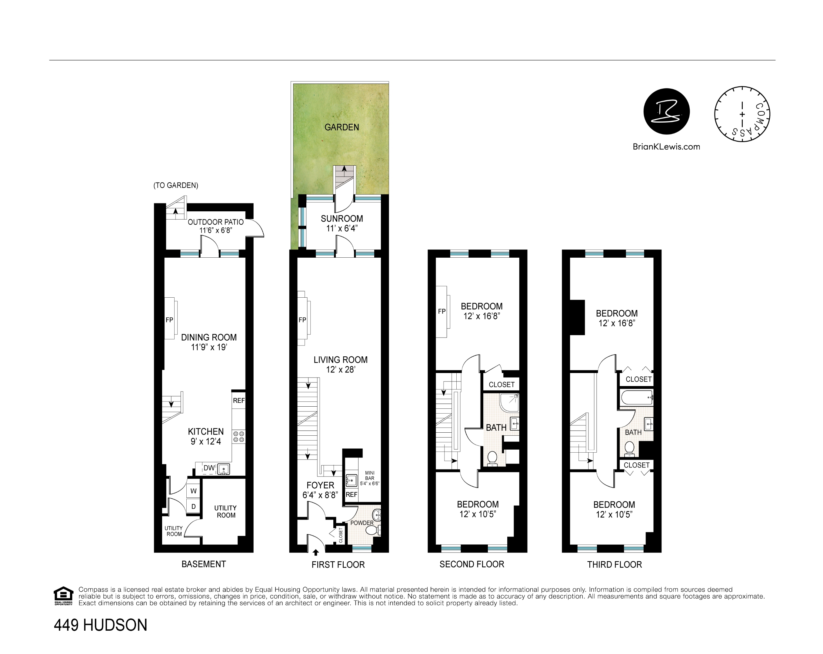 Welcome to a historic, sweet Federal house on Hudson Street in the West Village. 449 sits between Morton and Barrow Streets. Aside from its amazing location - where the West Village meets "Soho West" and Hudson Square - the beauty of this cottage-like home rests in its simplicity. Outside, time stands still -- the classic detail from the 1800's is handsomely preserved. Inside, the scale is heart-warming and manageable - the quality is very function-forward and easy - with a boutique scale. This slender sweetheart has an easy-to-live and easy-to-love layout with four floors, four bedrooms, and two and a half bathrooms with decorative fireplaces and exposed brick, lower-level kitchens with living areas, enclosed patio, and a terrific garden. With central AC and heat, in-house laundry, and brag-able proximity to most every downtown cultural, dining, shopping, and fitness destination, this sweetheart is -- quite simply - wonderful. A stone's throw from the Hudson River Esplanade and the future Google "campus," life here is convenient, fun, and easy.
