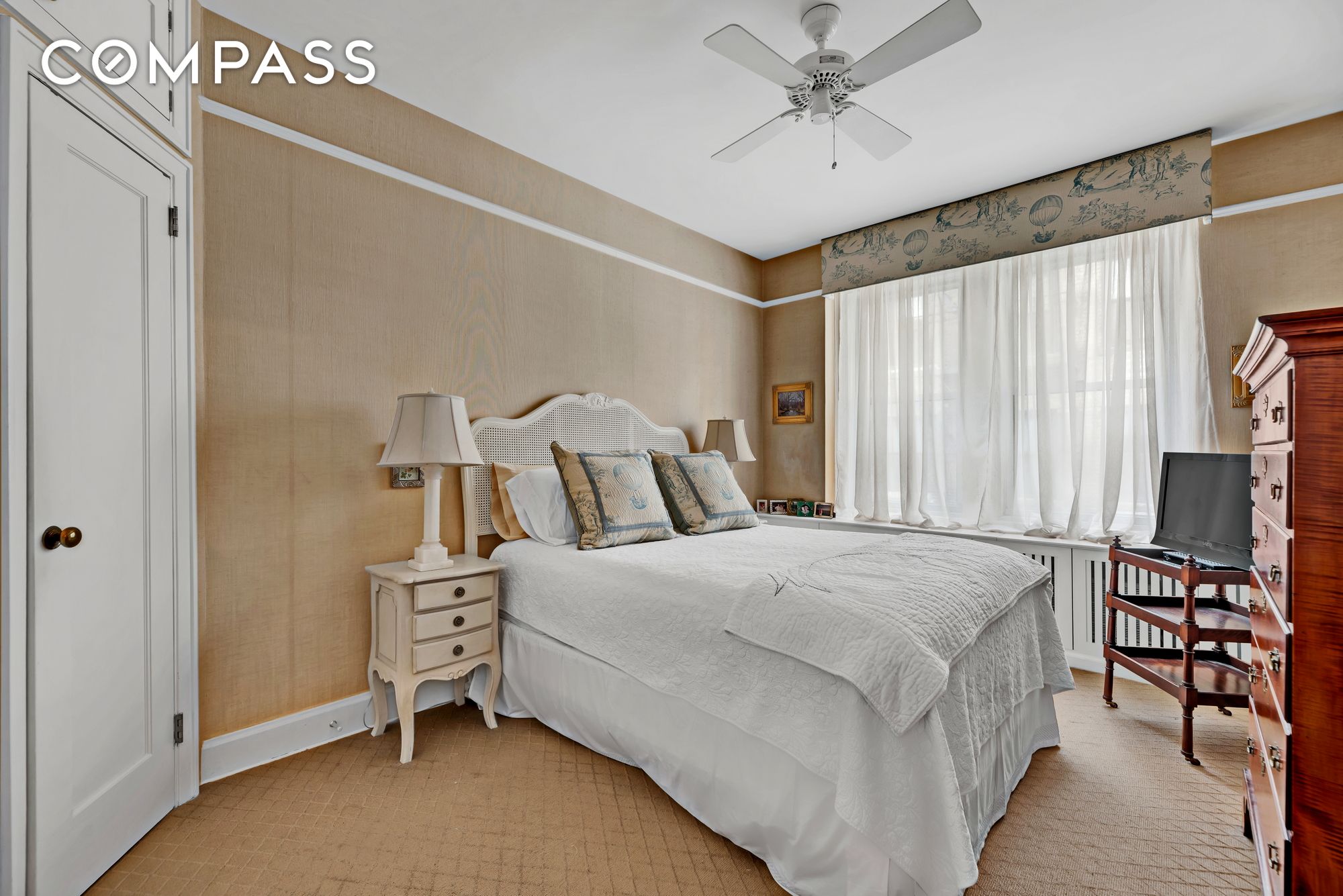 The primary bedroom is peaceful and bright, with big windows and good closets. The secondary bedroom -- with its French doors featuring more of this home's signature river views -- is sweetly scaled. A natural guest room, den, or office, this bonus bedroom is well suited for all of life's evolving needs. The sizable windowed bath is classically appointed and offers a soaking tub (with shower).
