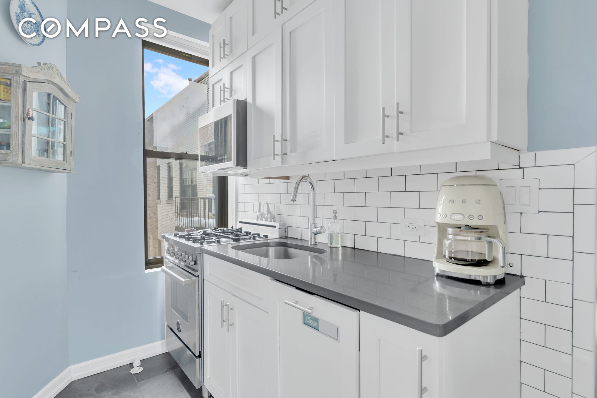 MOVE-IN & MARVELOUS - PIED-A-TERRE PERFECT - SHARE-WORTHY SUNSHINY SOUTH-FACER w/ H-U-G-E BEDROOM & WALLS OF CLOSETS TOP FLOOR & TERRIFIC, UPGRADED, SOULFUL, PRIME PRE-WAR w/BUILDING ROOF DECK & GYM GIFTING, GUARANTORS & PETS WELCOME (case by case) - FANTASTIC FULL SERVICE BUILDING IN PRIME MORNINGSIDE Need a quiet, sun-filled nest that's been re-done and with extra-high ceilings and refreshed period detail with no neighbors above you? One quick flight up to an easy, breezy roof deck? Need a cheerful, lovable, corner spot with an oversized bedroom that can host a bonus living area and a home office? Need tons of closets and an attractive windowed kitchen and a classic windowed bath? Want to have morning coffee and evening wine with magical, world-class skyline views from a one-easy-flight-up building roof deck? Want to workout downstairs and a great full-time staff at your beck and call? Well stop needing and wanting and start living a fun and easy, marvelous Morrningside life right here. Above ceilings soar to nearly 11 feet, underfoot are handsome hardwood floors, and everywhere you look there is lovely light and just the right amount of early 20th Century detail. The layout of this beautiful heart-warmer offers a flexible lifestyle to anyone who values peace, quiet, sunshine, and easy living. The oversized bedroom is crowned by a coffered ceiling, an absurd amount of closets, and is spacious enough to accommodate a work area, and a lounge area (and maybe a roommate?). The bright kitchen features quartz countertops, subway tiling, white Shaker cabinets, recessed lighting, under cabinet lighting, Bertazzoni refrigerator, stove and dishwasher, and a Haier microwave. The Carrara clad bathroom gives you a step-in shower, beautiful marble basket weave flooring, fixtures by Hansgrohe. The full service Rockfall, was created in 1909 by the legendary Blum brothers, and enjoys a seasoned staff, resident Superintendant, epic-view roof deck, gym, and enviable proximity to every neighborhood educational, cultural, fitness, dining and shopping destination. Nearby are Riverside Park, Central Park, Columbia University, Barnard College, and a plethora of easy transportation options. Want a winsome Westside life -- bright and tranquil, elevated but low-key, good looking yet practical, and super-convenient. Then here's the winsome standout that delivers.